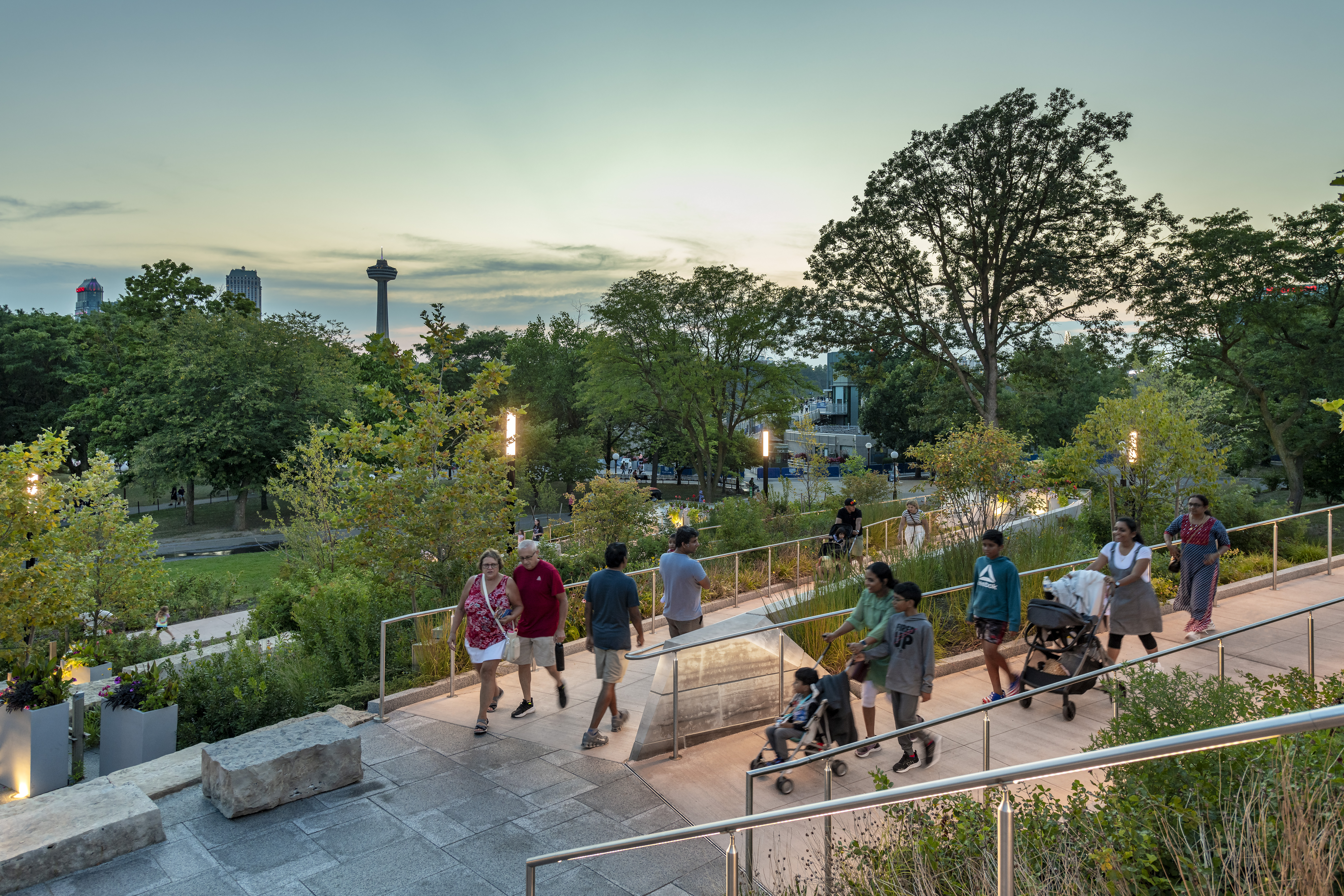 The Niagara Falls State Park Visitor Center represents a significant enhancement to the visitor experience at this iconic destination. As landscape architects for the project, Fisher Associates designed a landscape that seamlessly integrates with the park’s natural beauty while offering modern amenities and myriad educational experiences.